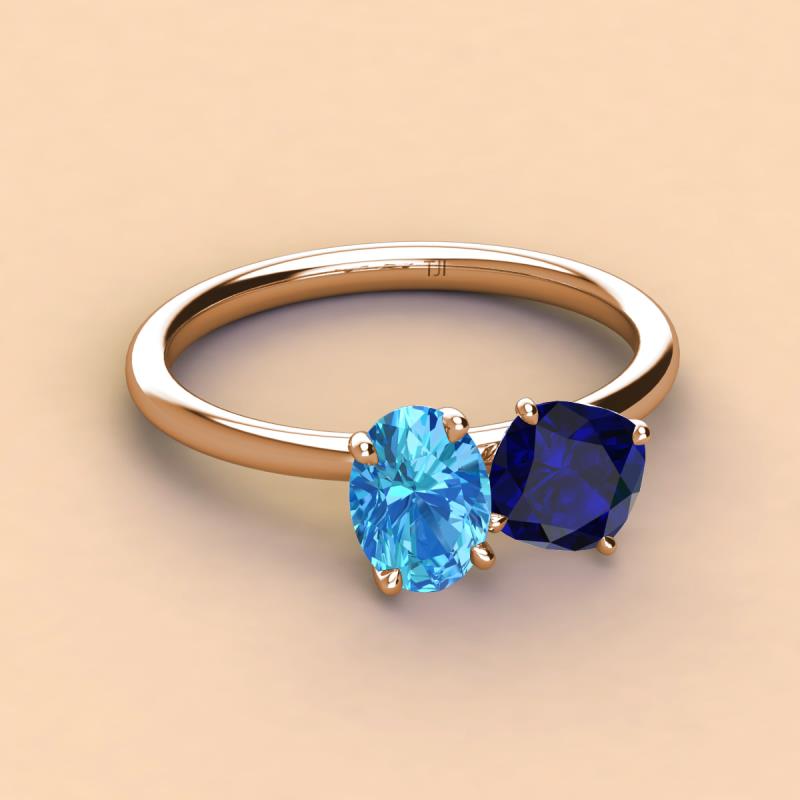 Oval Shape Blue Topaz & Cushion Shape Blue Sapphire 2.60 ctw Four Prong Womens 2 Stone Duo Engagement Ring 18K Rose Gold More Details ...