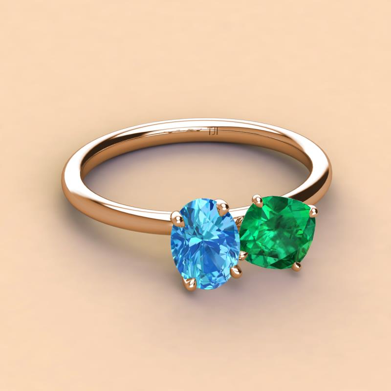 Oval Shape Blue Topaz & Cushion Shape Emerald 2.40 ctw Four Prong Womens 2 Stone Duo Engagement Ring 18K Rose Gold More Details ...
