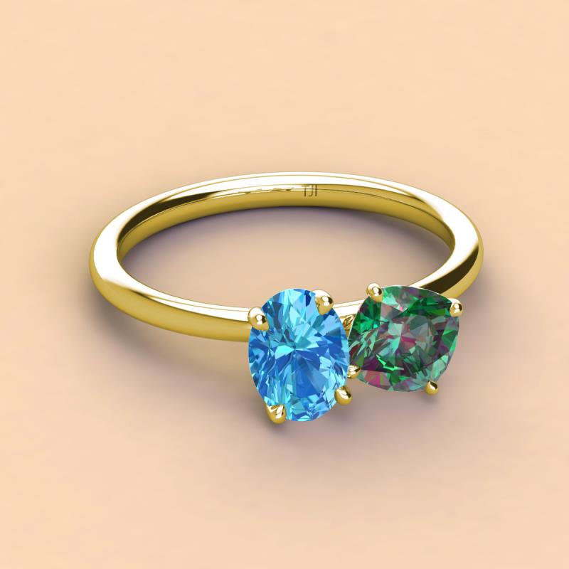 Oval Shape Blue Topaz & Cushion Shape Lab Created Alexandrite 2.70 ctw Four Prong Womens 2 Stone Duo Engagement Ring 14K Yellow Gold More Details ...