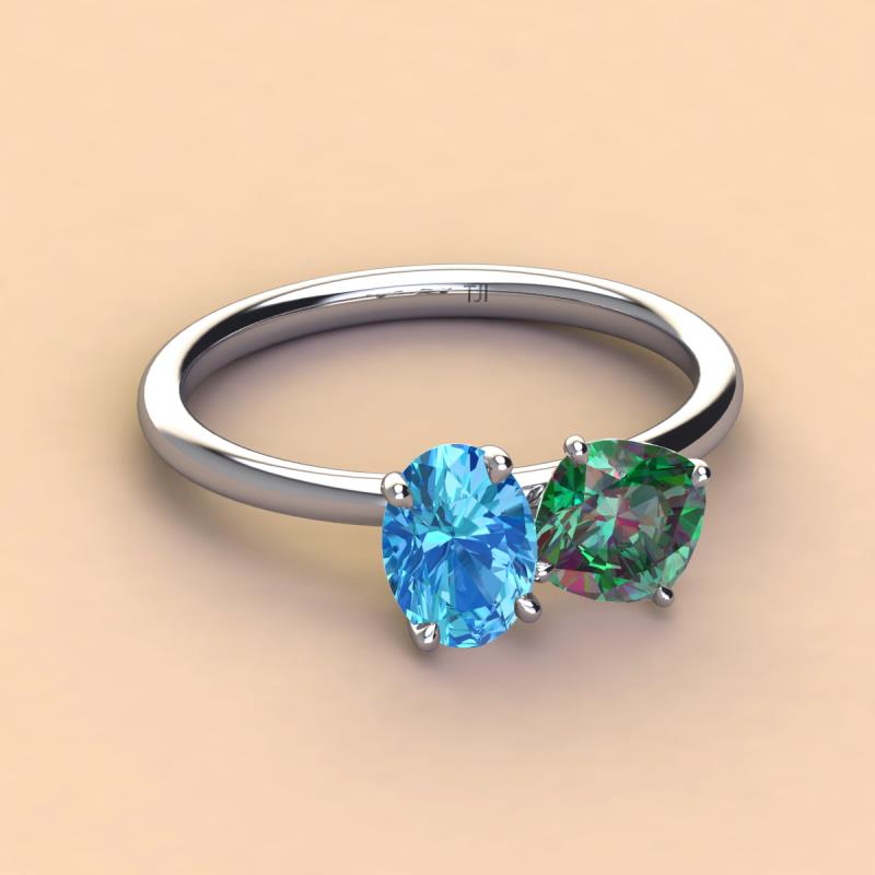 Two-stone Duo ring featuring an Oval shape Blue Topaz and Cushion shape Lab Created Alexandrite crafted beautifully that will effortlessly blend with her casual outfits and evening dresses.