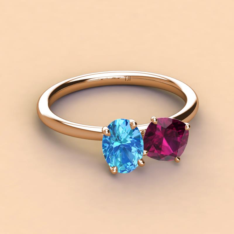 Oval Shape Blue Topaz & Cushion Shape Rhodolite Garnet 2.70 ctw Four Prong Womens 2 Stone Duo Engagement Ring 18K Rose Gold More Details ...
