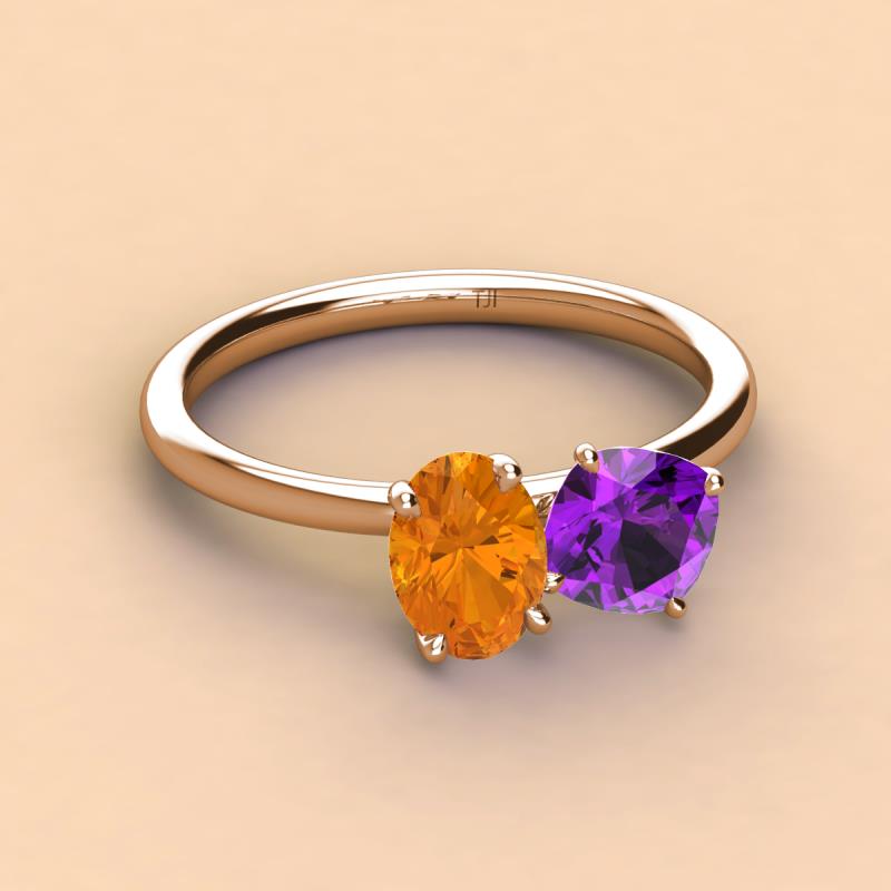 Oval Shape Citrine & Cushion Shape Amethyst 2.20 ctw Four Prong Womens 2 Stone Duo Engagement Ring 14K Rose Gold More Details ...