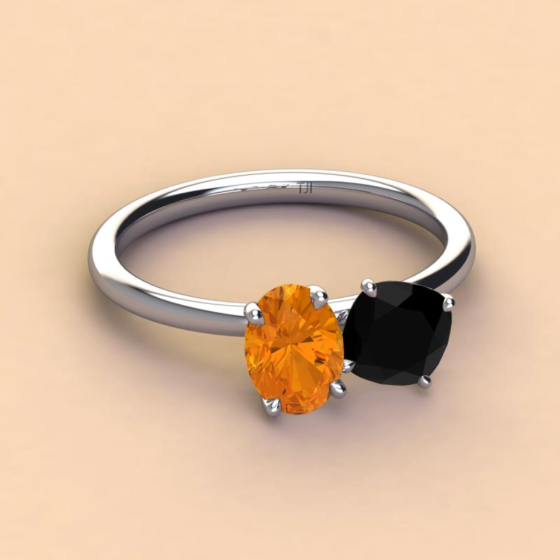 Oval Shape Citrine & Cushion Shape Black Onyx 2.15 ctw Four Prong Womens 2 Stone Duo Engagement Ring 10K White Gold More Details ...