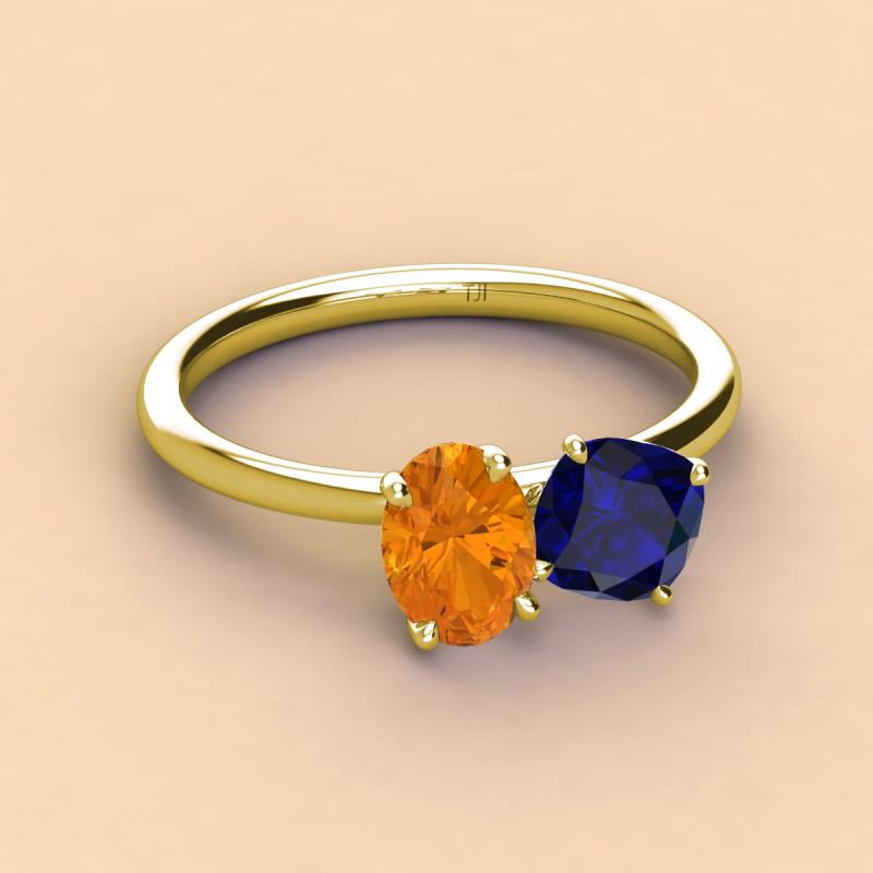 Two-stone Duo ring featuring an Oval shape Citrine and Cushion Shape Blue Sapphire crafted beautifully that will effortlessly blend with her casual outfits and evening dresses.