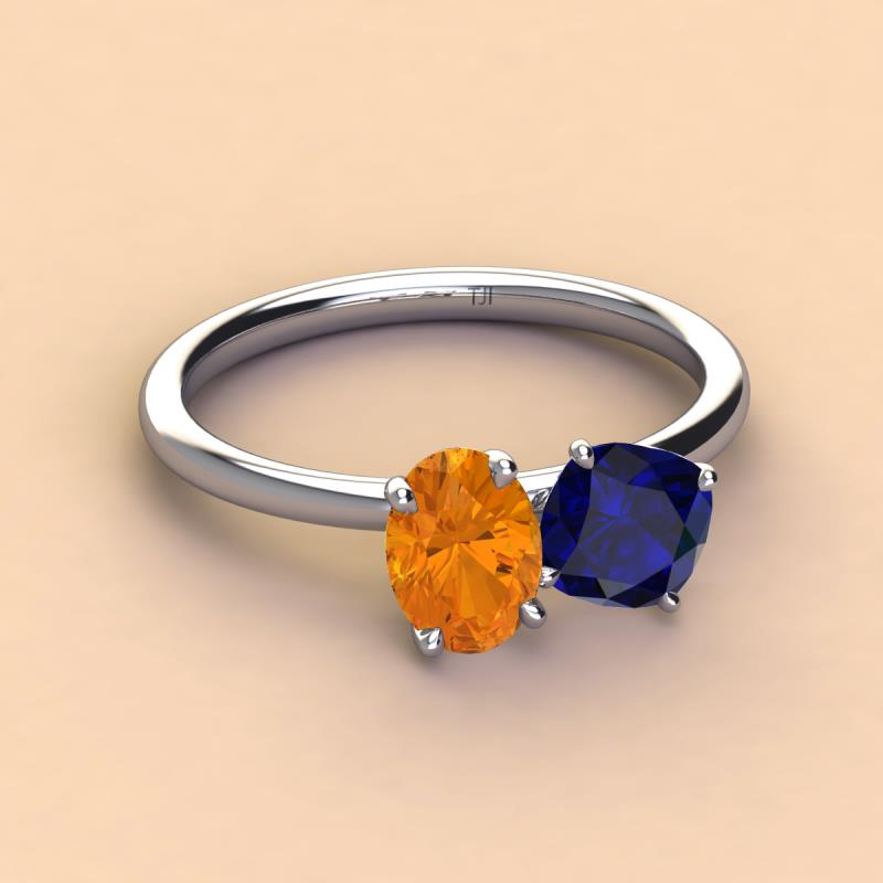 Oval Shape Citrine & Cushion Shape Blue Sapphire 2.45 ctw Four Prong Womens 2 Stone Duo Engagement Ring 10K White Gold More Details ...