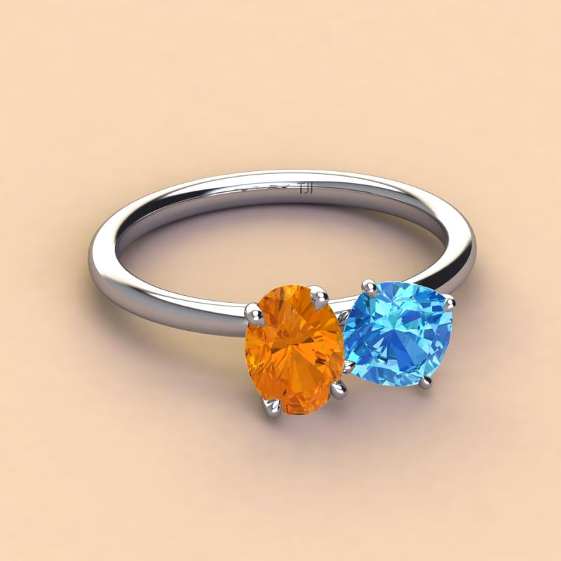 Oval Shape Citrine & Cushion Shape Blue Topaz 2.60 ctw Four Prong Womens 2 Stone Duo Engagement Ring 10K White Gold More Details ...