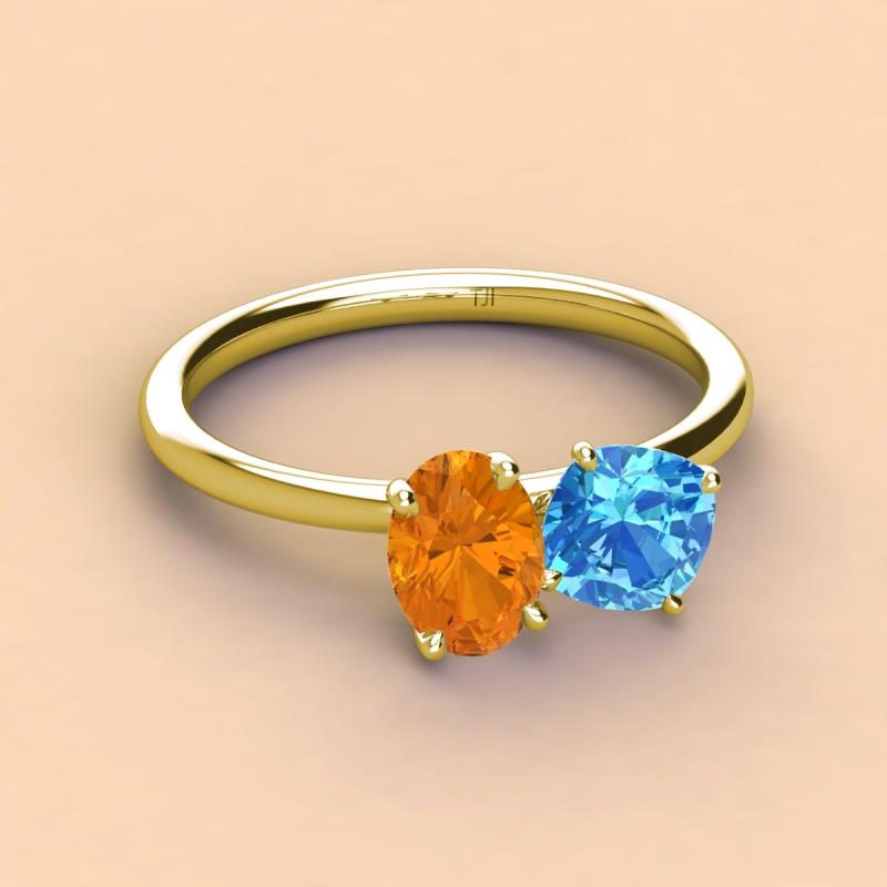 Two-stone Duo ring featuring an Oval shape Citrine and Cushion shape Blue Topaz crafted beautifully that will effortlessly blend with her casual outfits and evening dresses.