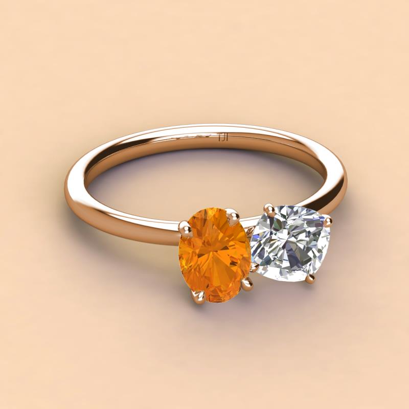 Two-stone Duo ring featuring an Oval shape Citrine and Cushion shape GIA Certified Diamond crafted beautifully that will effortlessly blend with her casual outfits and evening dresses.