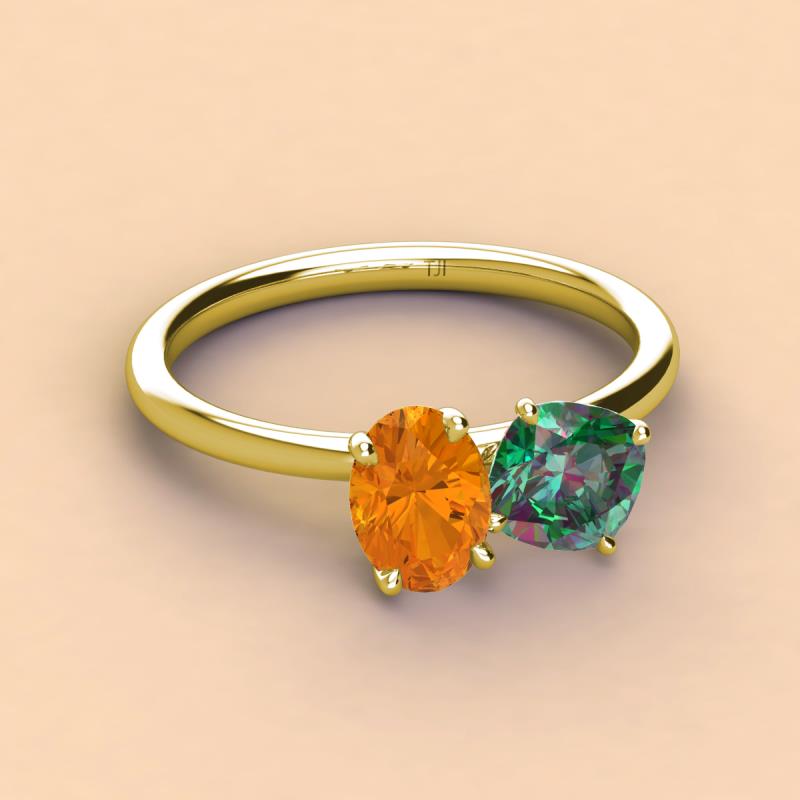 Two-stone Duo ring featuring an Oval shape Citrine and Cushion shape Lab Created Alexandrite crafted beautifully that will effortlessly blend with her casual outfits and evening dresses.