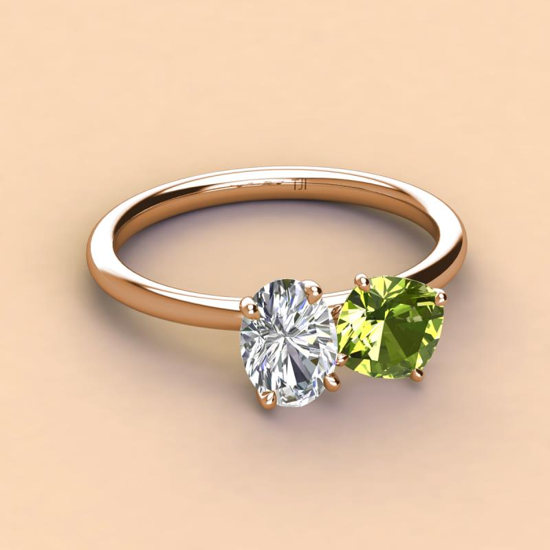 Oval Shape Forever Brilliant Moissanite & Cushion Shape Peridot 2.43 ctw Four Prong Womens 2 Stone Duo Engagement Ring 14K Rose Gold More Details ...