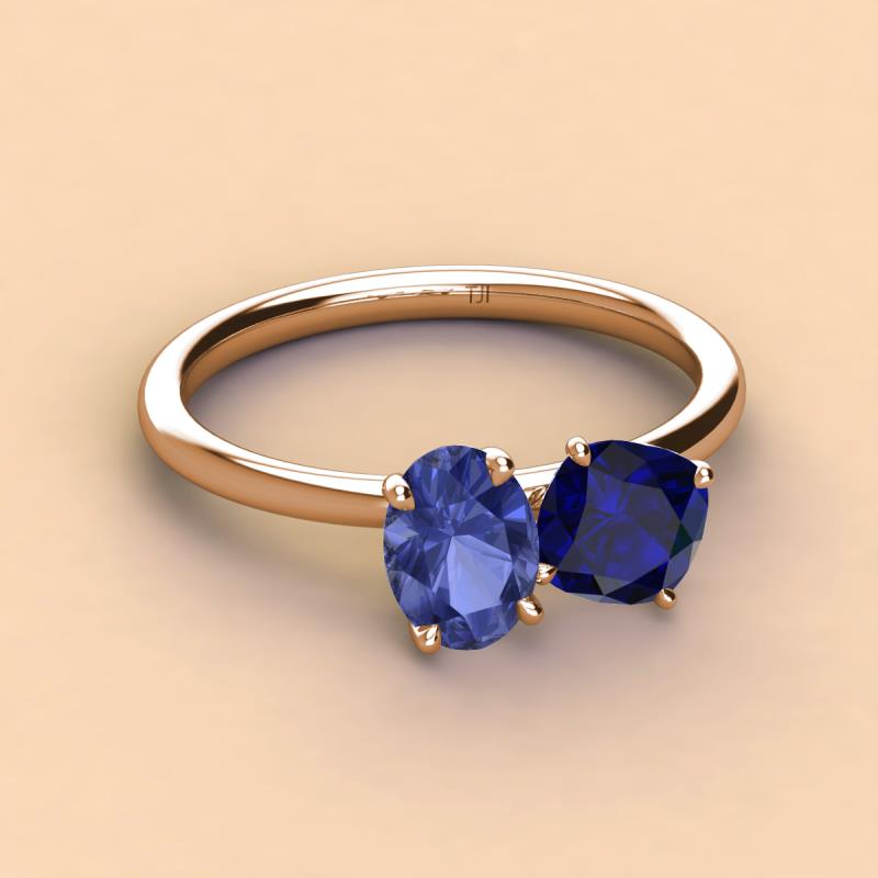Oval Shape Iolite & Cushion Shape Blue Sapphire 2.20 ctw Four Prong Womens 2 Stone Duo Engagement Ring 18K Rose Gold More Details ...