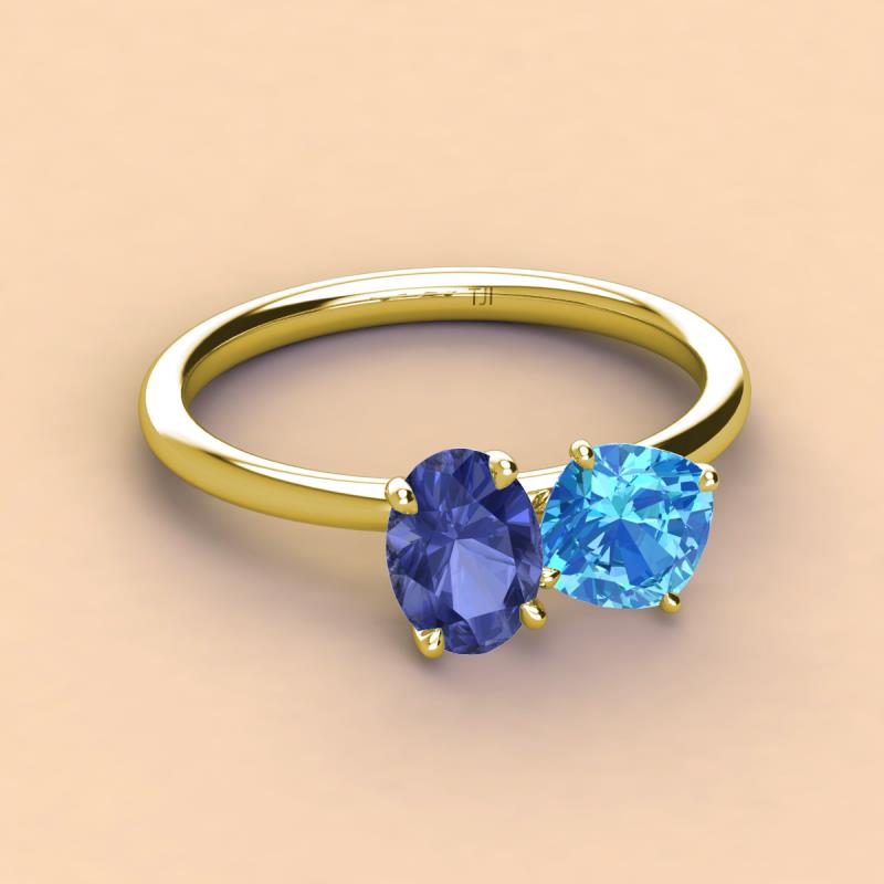 Oval Shape Iolite & Cushion Shape Blue Topaz 2.35 ctw Four Prong Womens 2 Stone Duo Engagement Ring 10K Yellow Gold More Details ...