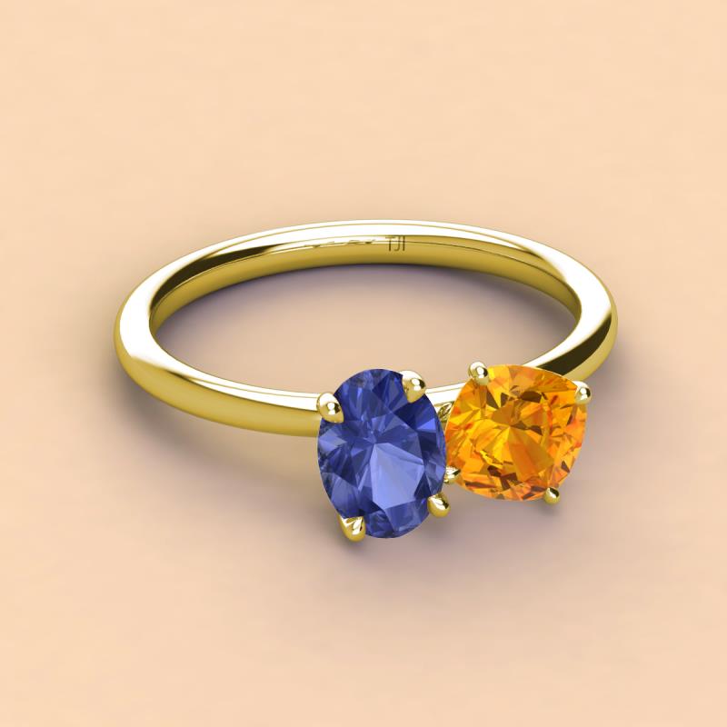 Two-stone Duo ring featuring an Oval shape Iolite and Cushion shape Citrine crafted beautifully that will effortlessly blend with her casual outfits and evening dresses.