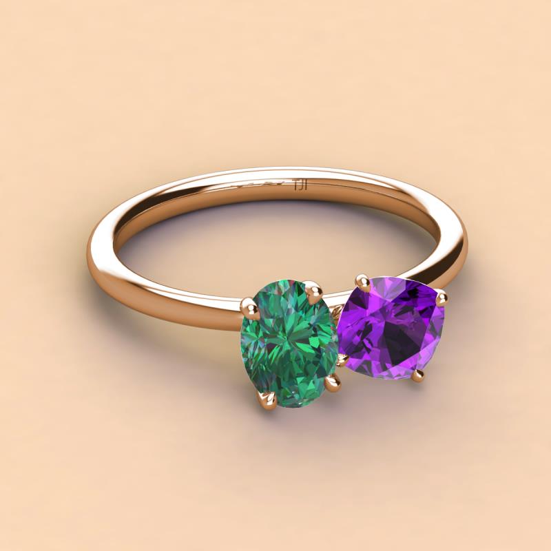 Oval Shape Lab Created Alexandrite & Cushion Shape Amethyst 2.40 ctw Four Prong Womens 2 Stone Duo Engagement Ring 14K Rose Gold More Details ...