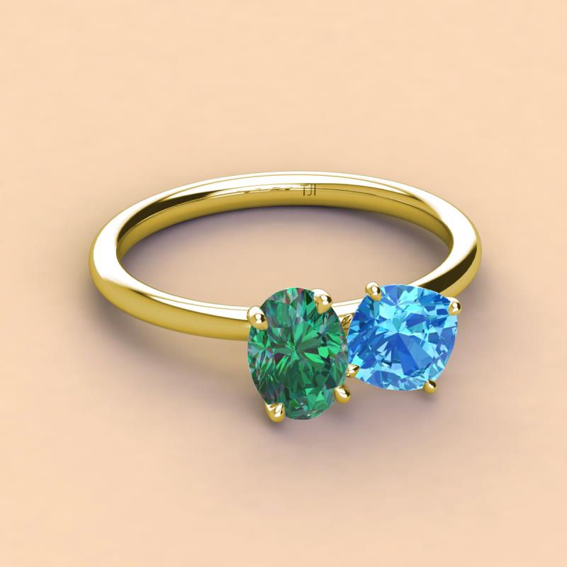 Oval Shape Lab Created Alexandrite & Cushion Shape Blue Topaz 2.80 ctw Four Prong Womens 2 Stone Duo Engagement Ring 18K Yellow Gold More Details ...