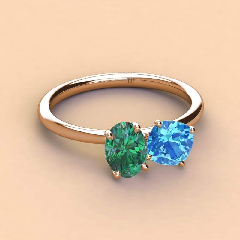 Two-stone Duo ring featuring an Oval shape Lab Created Alexandrite and Cushion shape Blue Topaz crafted beautifully that will effortlessly blend with her casual outfits and evening dresses.