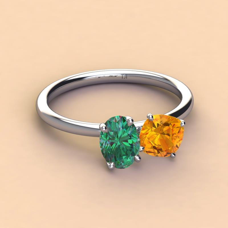 Oval Shape Lab Created Alexandrite & Cushion Shape Citrine 2.40 ctw Four Prong Womens 2 Stone Duo Engagement Ring 10K White Gold More Details ...