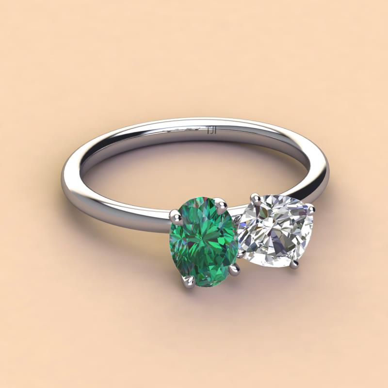 Two-stone Duo ring featuring an Oval shape Lab Created Alexandrite and Cushion shape Forever Brilliant Moissanite crafted beautifully that will effortlessly blend with her casual outfits and evening dresses.