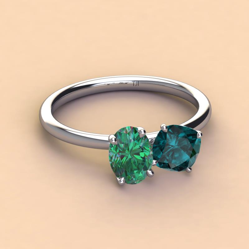 Two-stone Duo ring featuring an Oval shape Lab Created Alexandrite and Cushion shape London Blue Topaz crafted beautifully that will effortlessly blend with her casual outfits and evening dresses.