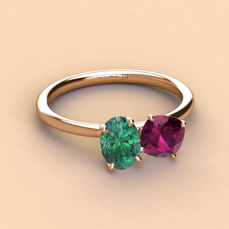 Oval Shape Lab Created Alexandrite & Cushion Shape Rhodolite Garnet 2.75 ctw Four Prong Womens 2 Stone Duo Engagement Ring 10K Rose Gold More Details ...