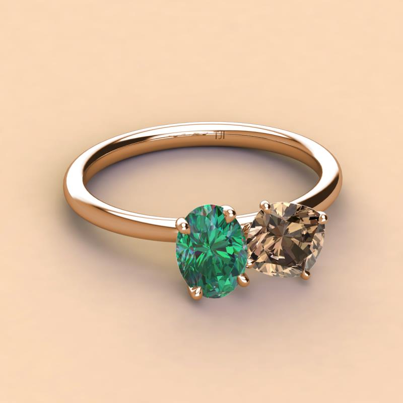 Oval Shape Lab Created Alexandrite & Cushion Shape Smoky Quartz 2.60 ctw Four Prong Womens 2 Stone Duo Engagement Ring 14K Rose Gold More Details ...
