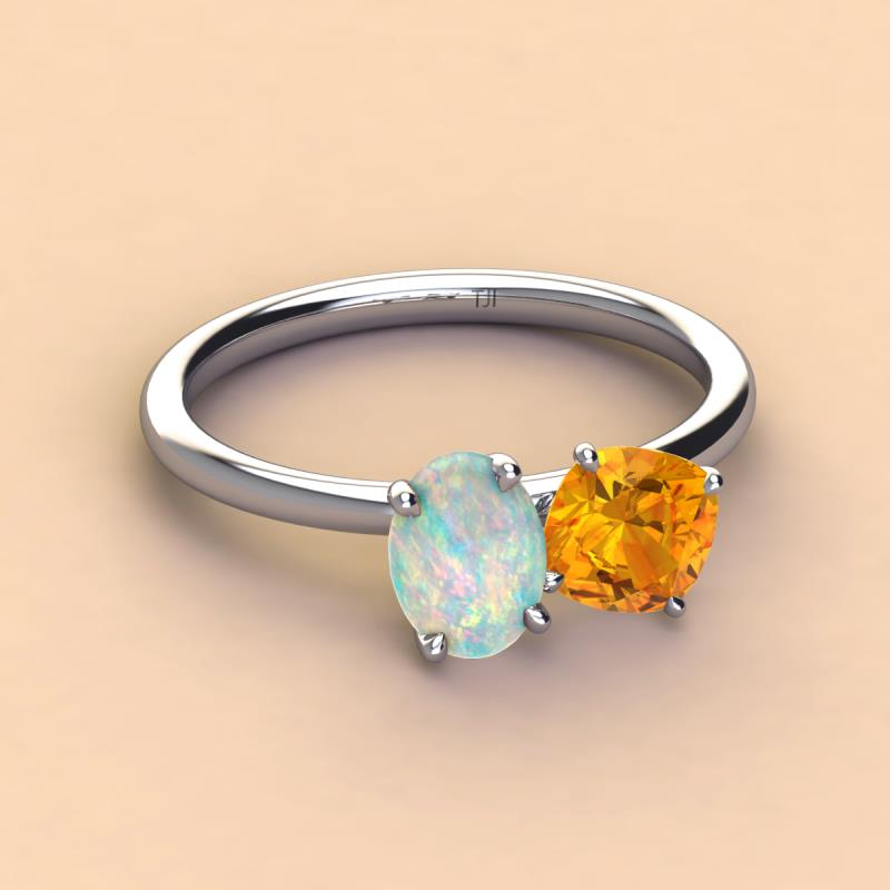 Oval Shape Opal & Cushion Shape Citrine 1.62 ctw Four Prong Womens 2 Stone Duo Engagement Ring 18K White Gold More Details ...