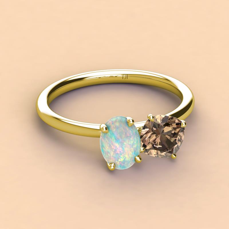 Oval Shape Opal & Cushion Shape Smoky Quartz 1.82 ctw Four Prong Womens 2 Stone Duo Engagement Ring 10K Yellow Gold More Details ...
