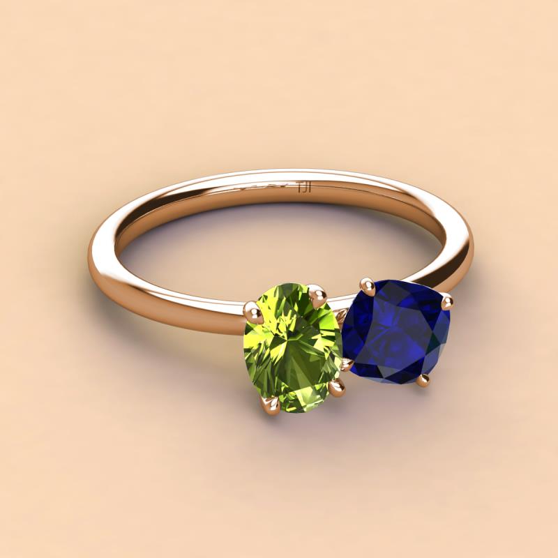 Oval Shape Peridot & Cushion Shape Blue Sapphire 2.60 ctw Four Prong Womens 2 Stone Duo Engagement Ring 10K Rose Gold More Details ...