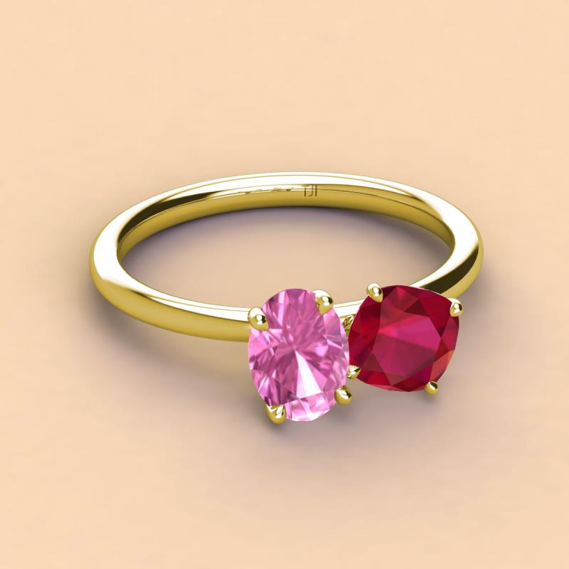 Oval Shape Pink Sapphire & Cushion Shape Ruby 2.65 ctw Four Prong Womens 2 Stone Duo Engagement Ring 14K Yellow Gold More Details ...