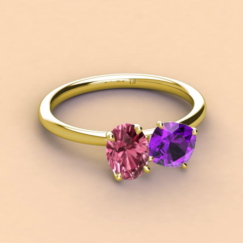 Oval Shape Pink Tourmaline & Cushion Shape Amethyst 2.20 ctw Four Prong Womens 2 Stone Duo Engagement Ring 18K Yellow Gold More Details ...