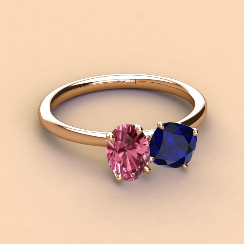 Oval Shape Pink Tourmaline & Cushion Shape Blue Sapphire 2.45 ctw Four Prong Womens 2 Stone Duo Engagement Ring 14K Rose Gold More Details ...