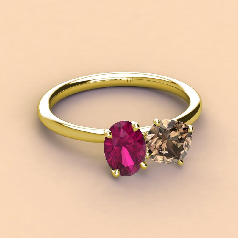 Oval Shape Rhodolite Garnet & Cushion Shape Smoky Quartz 2.65 ctw Four Prong Womens 2 Stone Duo Engagement Ring 10K Yellow Gold More Details ...