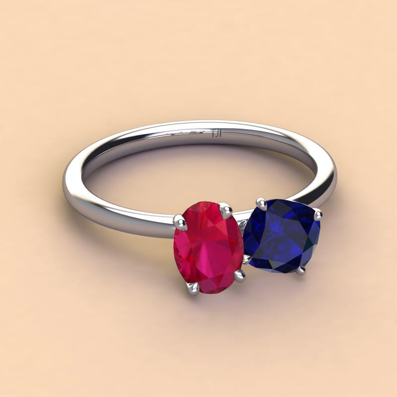 Oval Shape Ruby & Cushion Shape Blue Sapphire 2.70 ctw Four Prong Womens 2 Stone Duo Engagement Ring Platinum More Details ...
