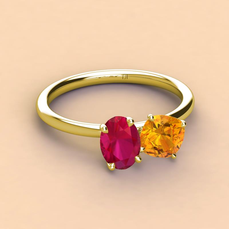 Oval Shape Ruby & Cushion Shape Citrine 2.45 ctw Four Prong Womens 2 Stone Duo Engagement Ring 18K Yellow Gold More Details ...