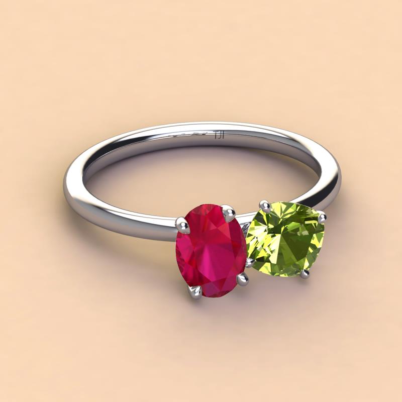 Oval Shape Ruby & Cushion Shape Peridot 2.60 ctw Four Prong Womens 2 Stone Duo Engagement Ring 10K White Gold More Details ...