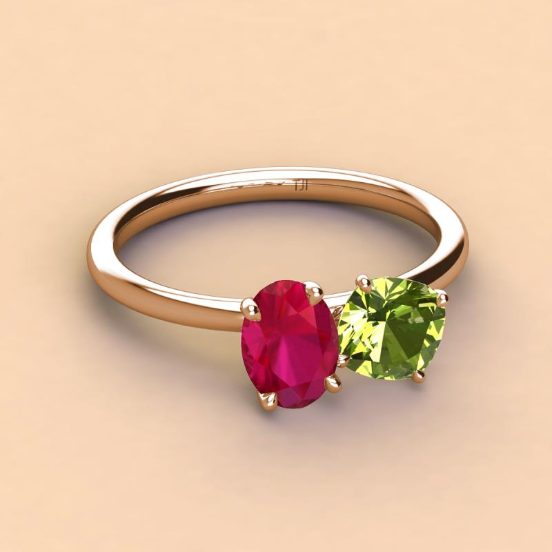 Oval Shape Ruby & Cushion Shape Peridot 2.60 ctw Four Prong Womens 2 Stone Duo Engagement Ring 10K Rose Gold More Details ...