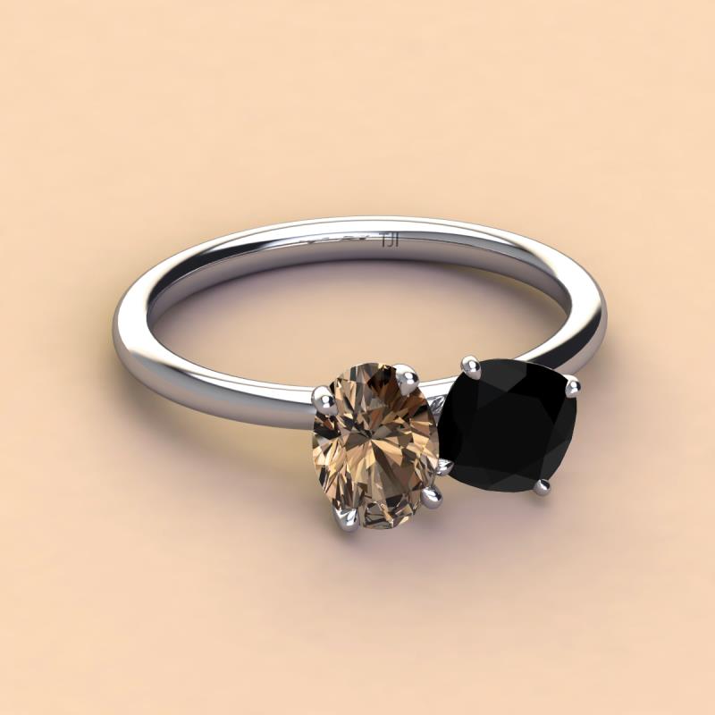 Two-stone Duo ring featuring an Oval shape Smoky Quartz and Cushion shape Black Onyx crafted beautifully that will effortlessly blend with her casual outfits and evening dresses.