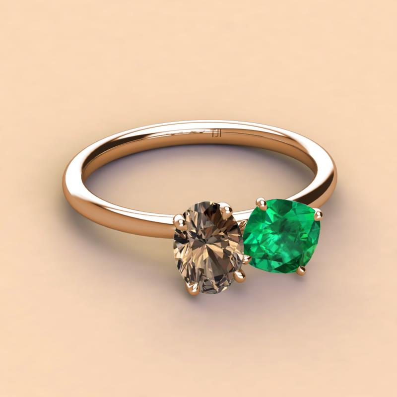 Oval Shape Smoky Quartz & Cushion Shape Emerald 2.25 ctw Four Prong Womens 2 Stone Duo Engagement Ring 10K Rose Gold More Details ...