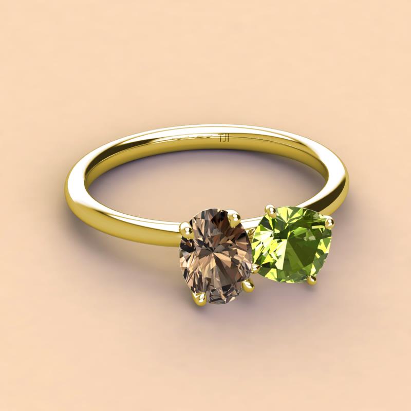 Oval Shape Smoky Quartz & Cushion Shape Peridot 2.45 ctw Four Prong Womens 2 Stone Duo Engagement Ring 18K Yellow Gold More Details ...