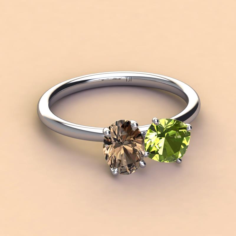 Oval Shape Smoky Quartz & Cushion Shape Peridot 2.45 ctw Four Prong Womens 2 Stone Duo Engagement Ring 10K White Gold More Details ...