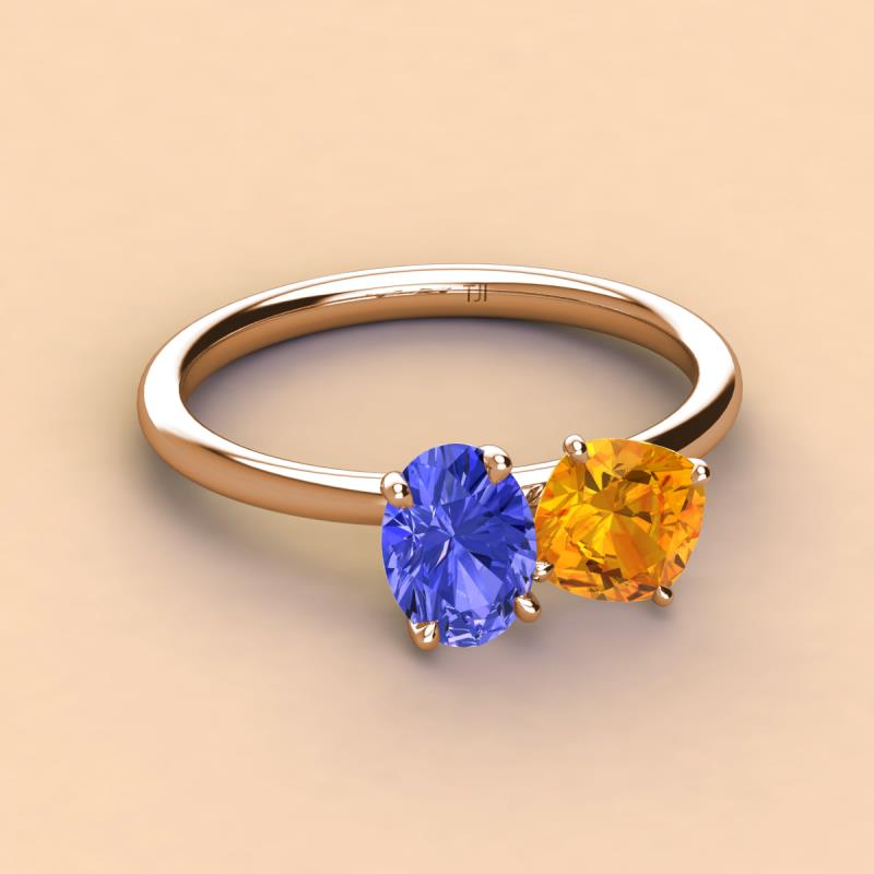 Two-stone Duo ring featuring an Oval shape Tanzanite and Cushion shape Citrine crafted beautifully that will effortlessly blend with her casual outfits and evening dresses.