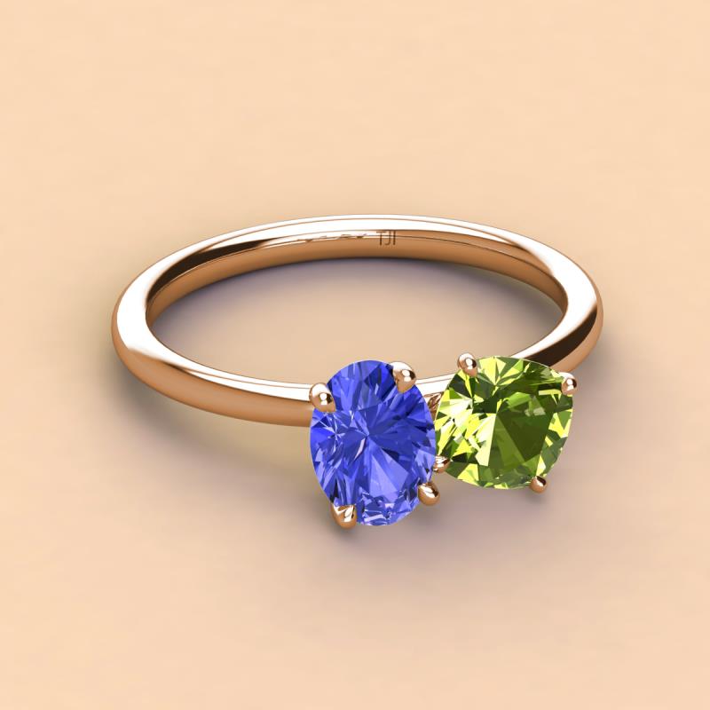 Oval Shape Tanzanite & Cushion Shape Peridot 2.60 ctw Four Prong Womens 2 Stone Duo Engagement Ring 14K Rose Gold More Details ...