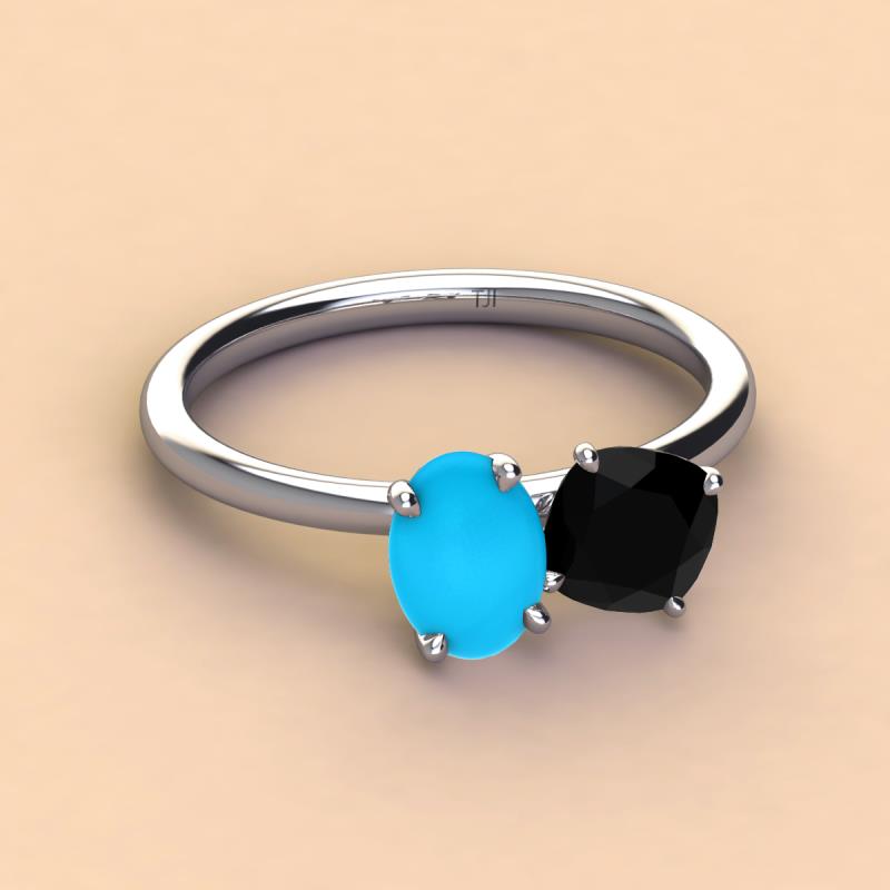 Two-stone Duo ring featuring an Oval shape Turquoise & Cushion shape Black Onyx crafted beautifully that will effortlessly blend with her casual outfits and evening dresses.