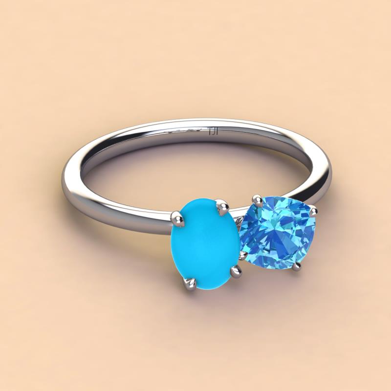 Oval Shape Turquoise & Cushion Shape Blue Topaz 2.30 ctw Four Prong Womens 2 Stone Duo Engagement Ring 18K White Gold More Details ...