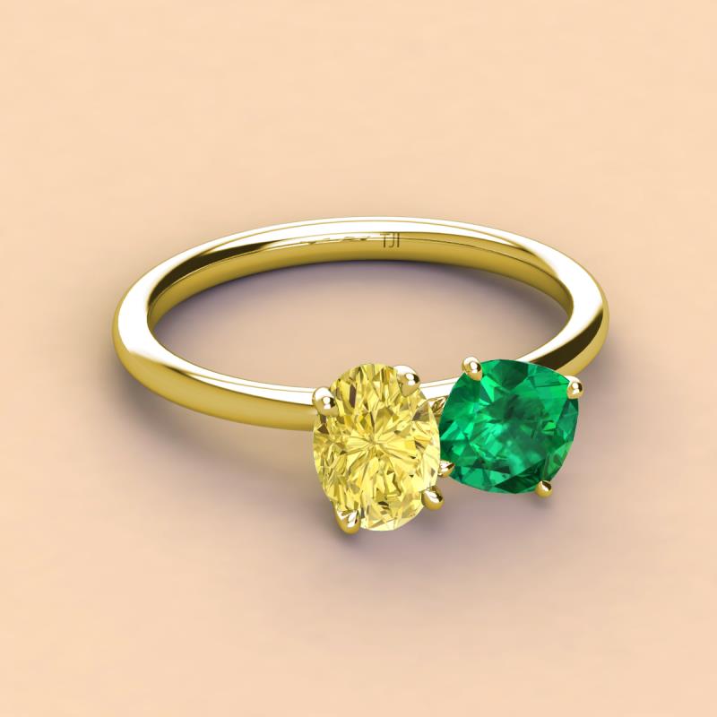 Oval Shape Yellow Sapphire & Cushion Shape Emerald 2.50 ctw Four Prong Womens 2 Stone Duo Engagement Ring 18K Yellow Gold More Details ...