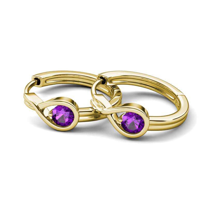 0.40 ctw (4.00 mm) Round Amethyst Infinity Solitaire Women Bezel set Hoop Earrings in 14K Yellow Gold More Details ...