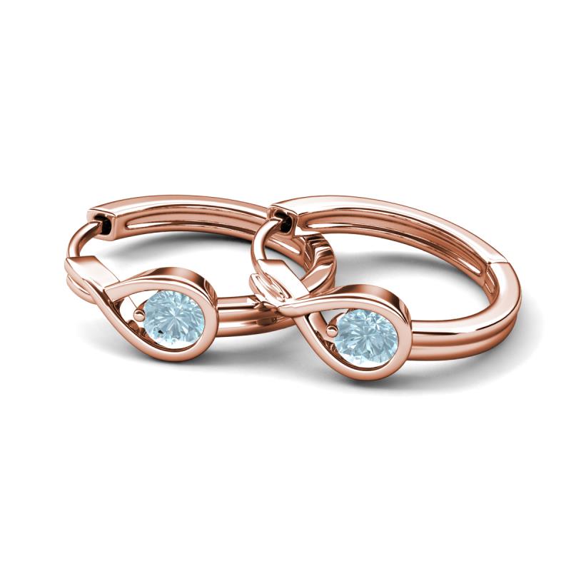 0.40 ctw (4.00 mm) Round Aquamarine Infinity Solitaire Women Bezel set Hoop Earrings in 14K Rose Gold More Details ...