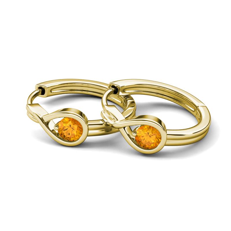 0.40 ctw (4.00 mm) Round Citrine Infinity Solitaire Women Bezel set Hoop Earrings in 14K Yellow Gold More Details ...