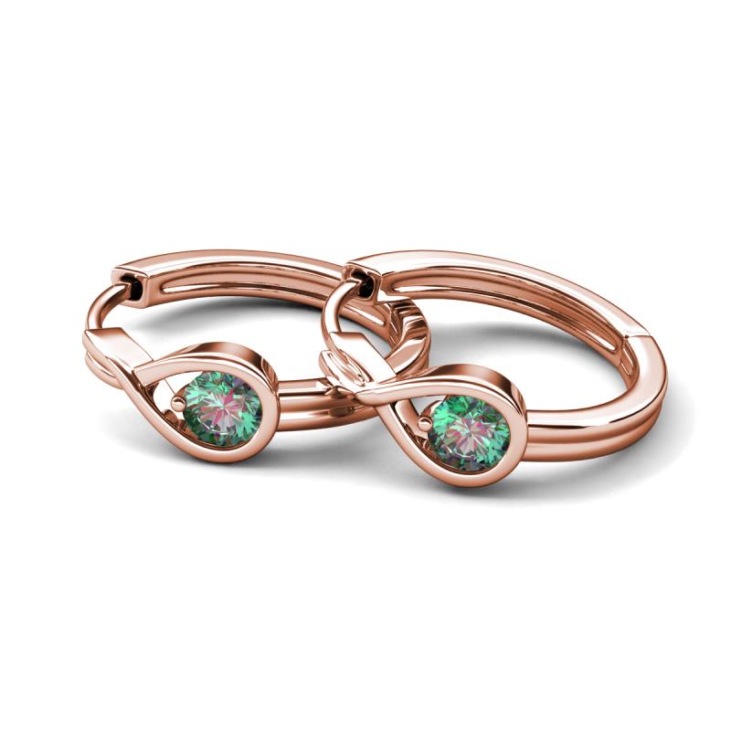 0.70 ctw (4.00 mm) Round Lab Created Alexandrite Infinity Solitaire Women Bezel set Hoop Earrings in 18K Rose Gold More Details ...