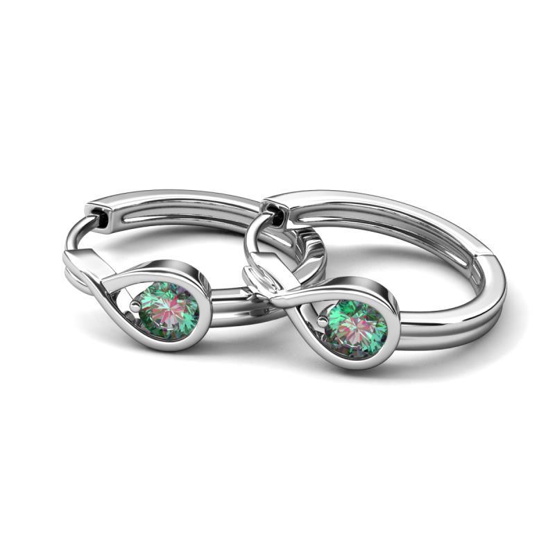 0.70 ctw (4.00 mm) Round Lab Created Alexandrite Infinity Solitaire Women Bezel set Hoop Earrings in 18K White Gold More Details ...